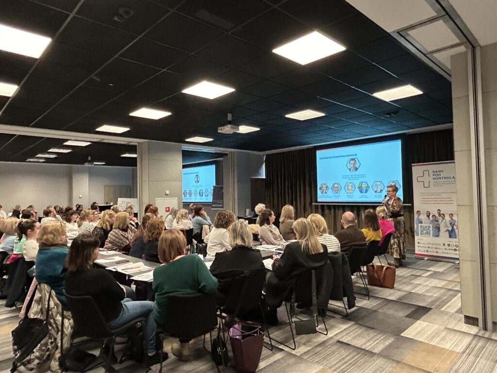 Podczas wykładów omówiliśmy rolę pielęgniarki w leczeniu ran, znaczenie edukacji pacjentów i zapobiegania powikłaniom, podejście do leczenia ran w oparciu o najnowsze wytyczne oraz podstawowe zasady oczyszczania i miejscowego postępowania w terapii ran zgodnie z koncepcją TIMERS. Dużo uwagi poświęcono również roli antyseptyki w leczeniu ran, podkreślając jej znaczenie w ograniczaniu ryzyka infekcji i przyspieszaniu procesów gojenia.